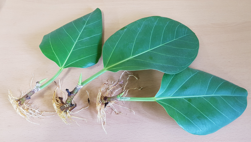 물꽂이해서 뿌리가 난 고무나무가 넘쳐나고 있다.