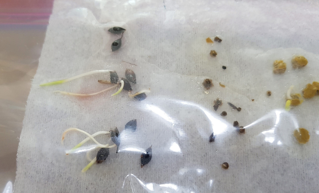 다음, 과산화수소수를 소량 첨가해준 지퍼락의 새싹들.