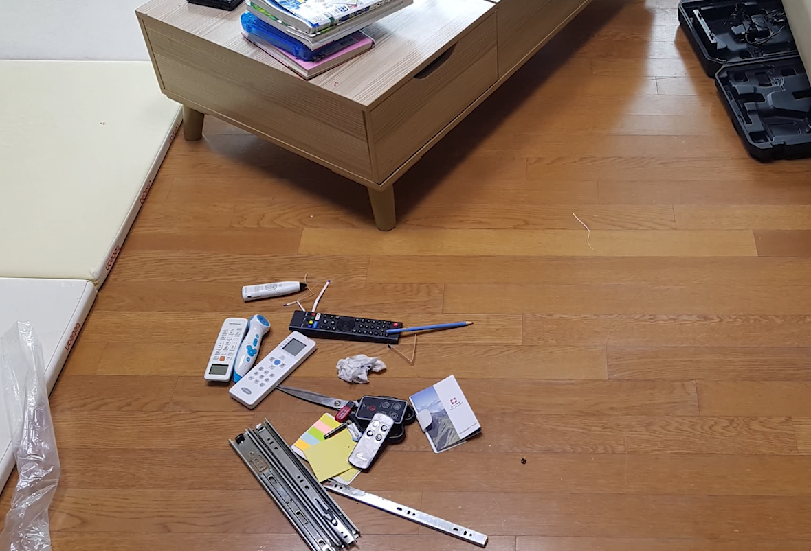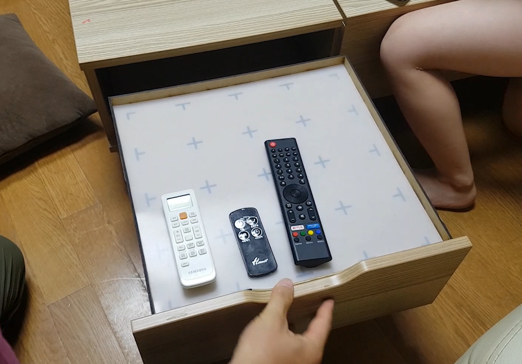 서랍을 미닫을 때, 리모컨들이 움직이지 않도록 잡아줄 예정이다.