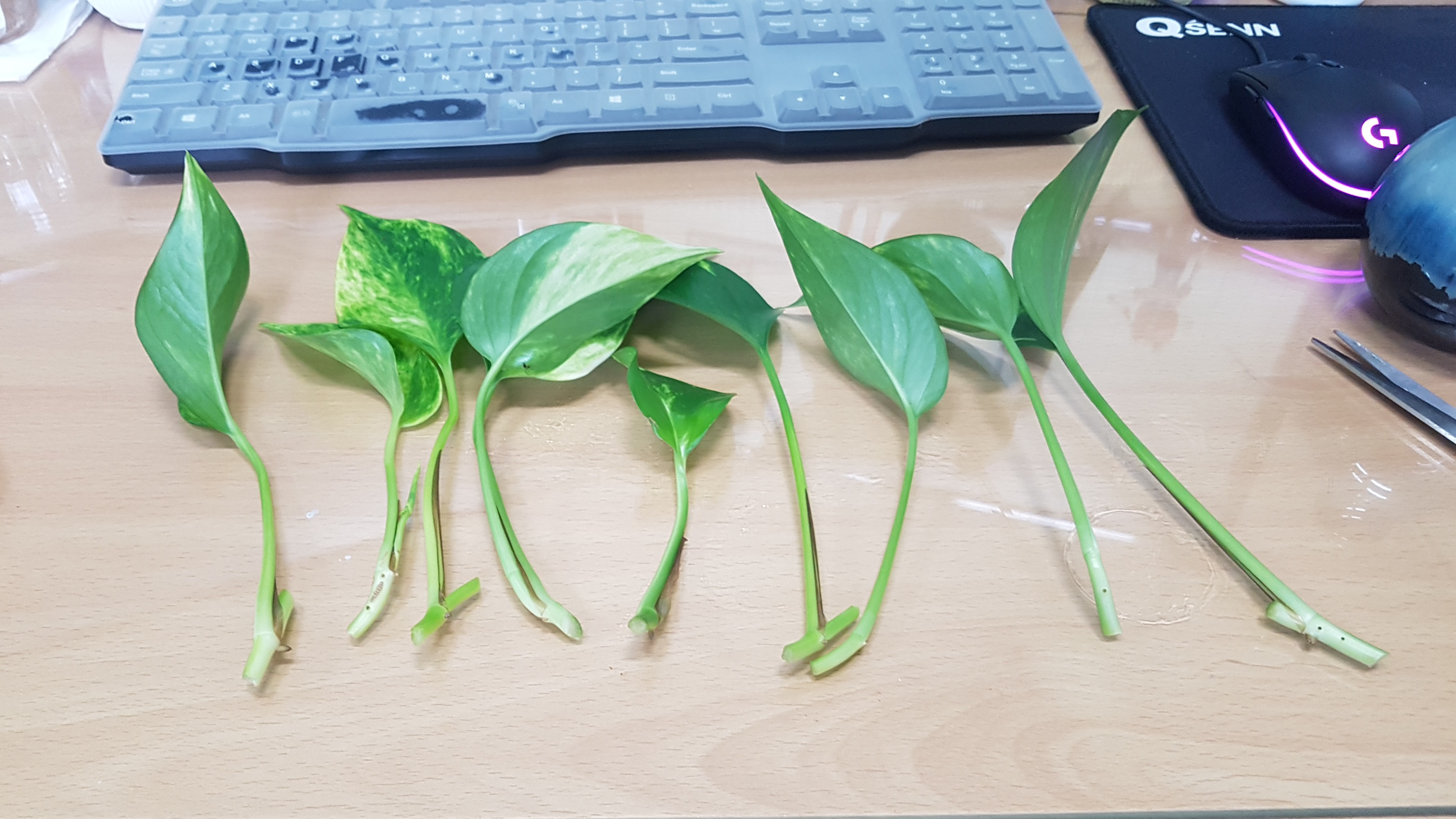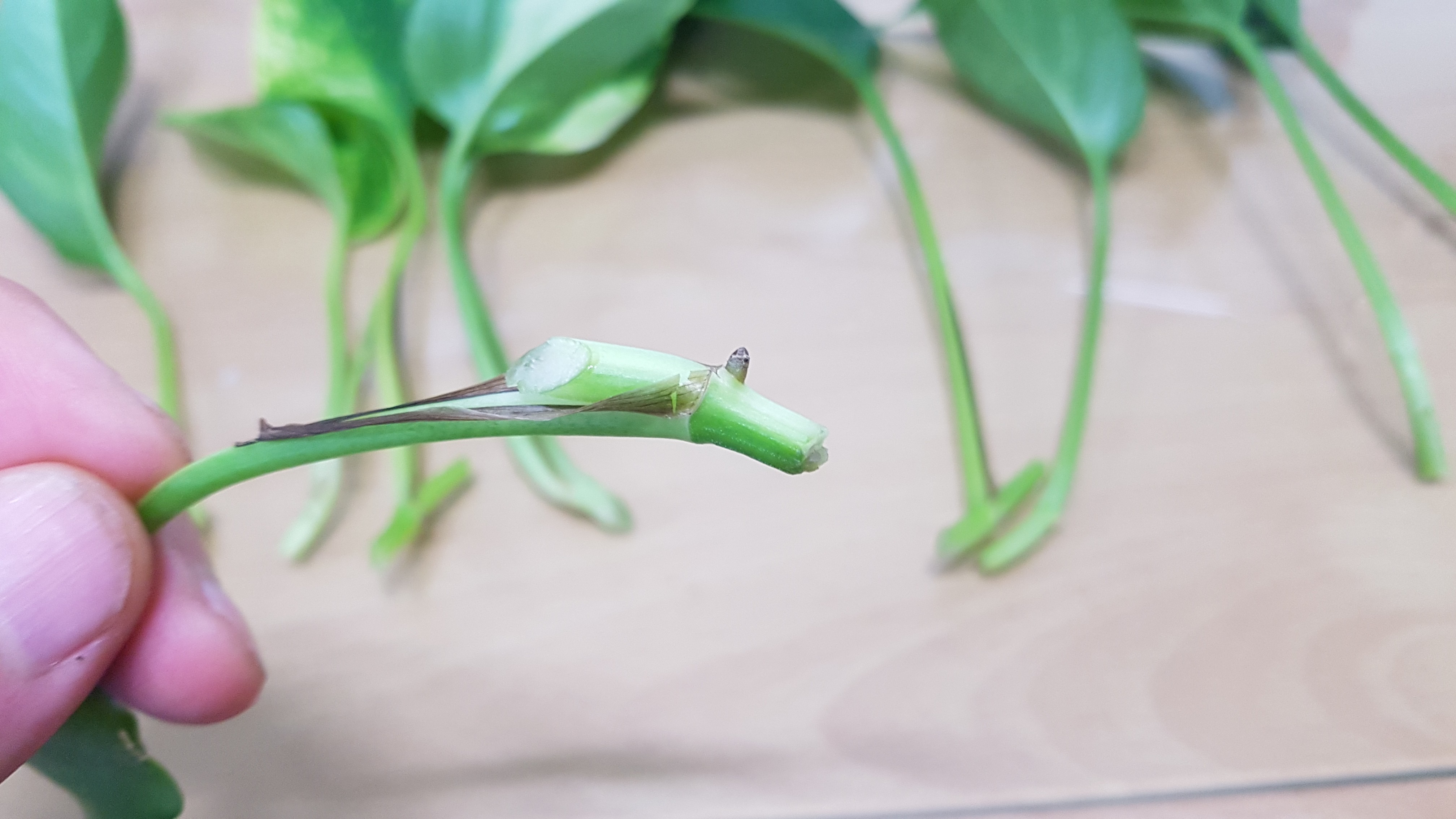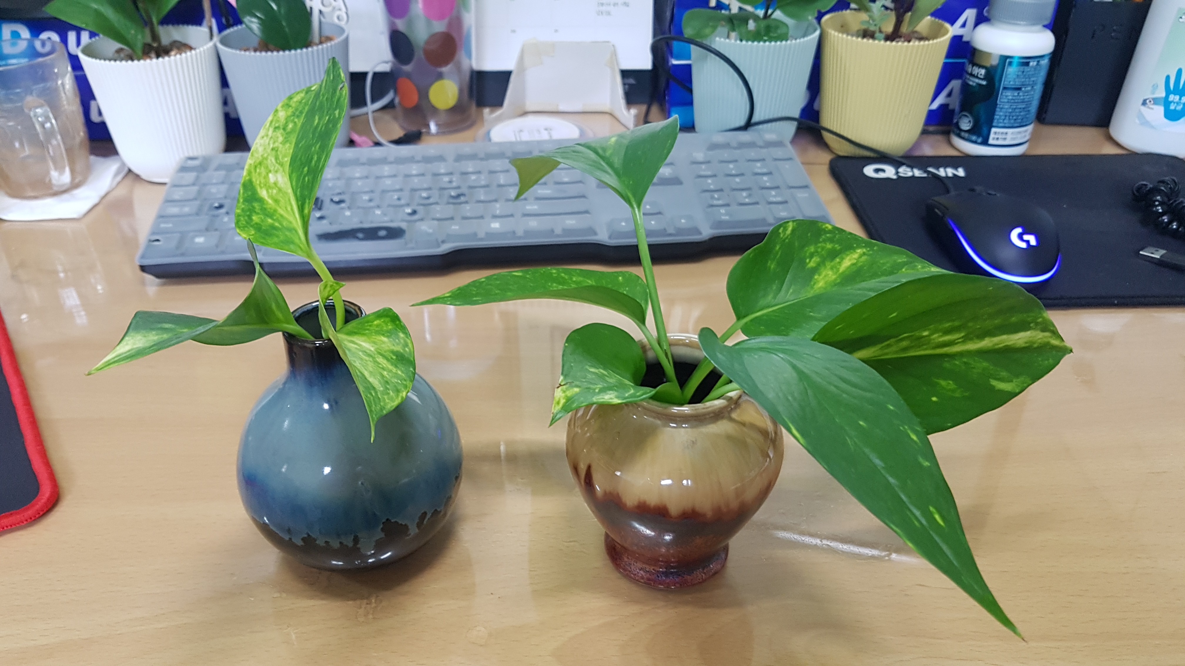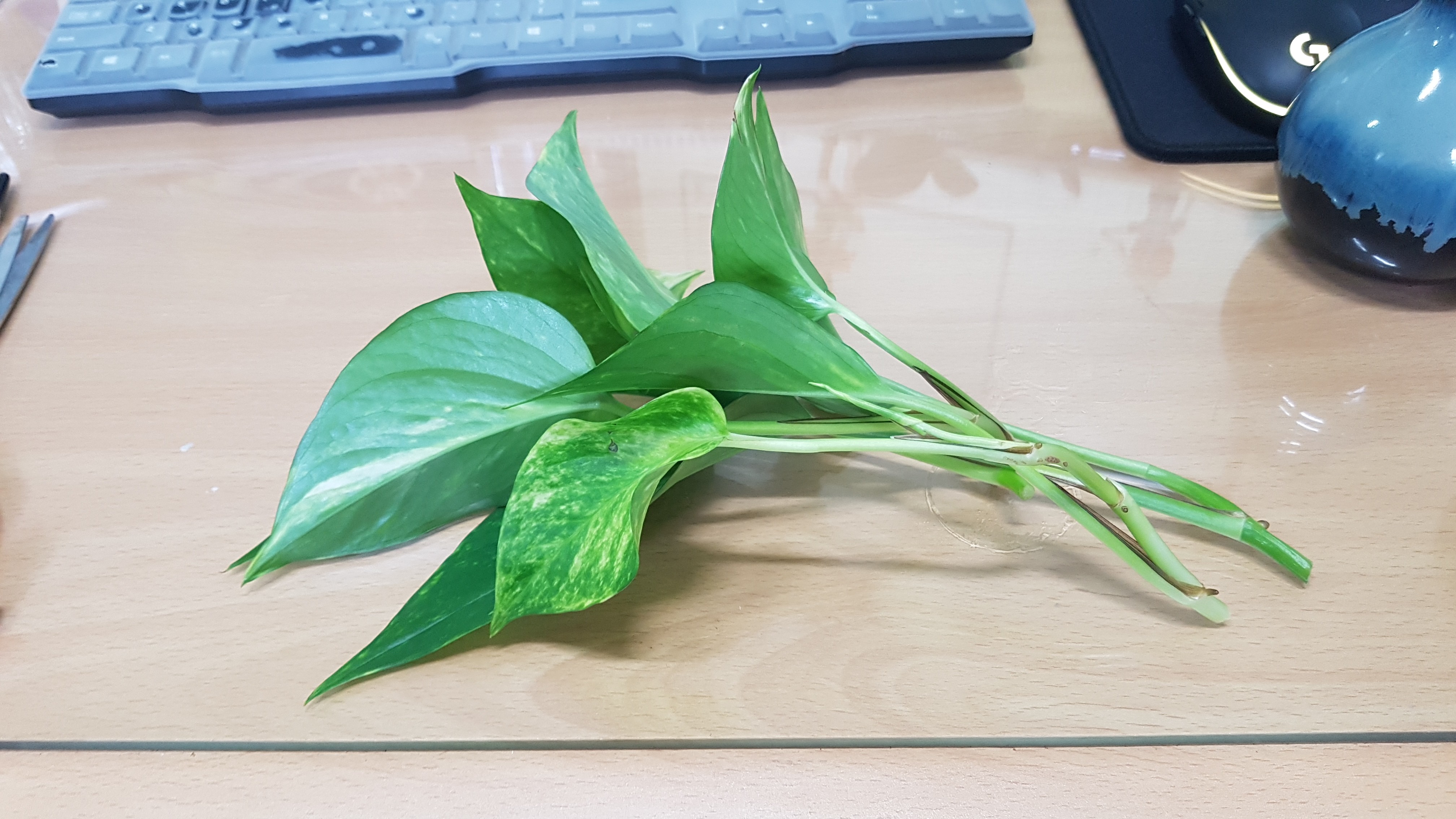 그래서 옆자리 부장님 자리에 있는 스킨답서스를 몇 줄기 잘라왔다.