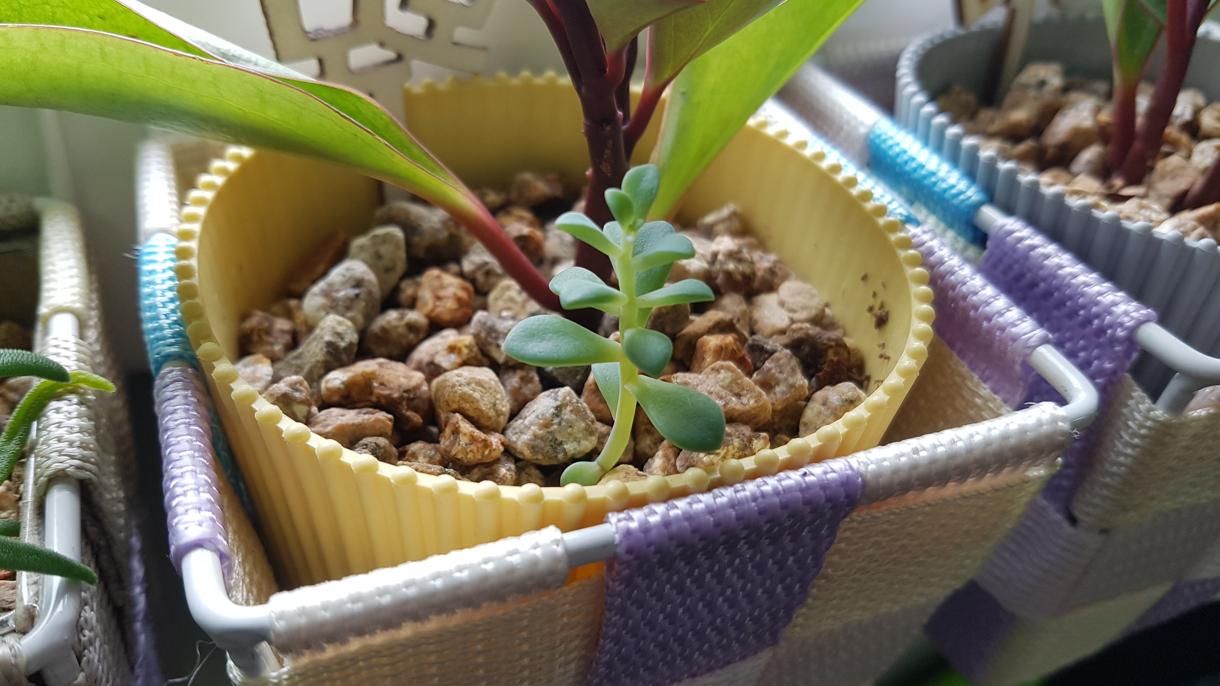 송엽국, 홍페페 그리고 다육이 하나가 잎꽂이로 번식되었다.