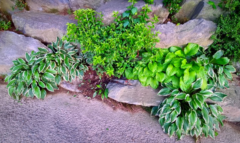 3년 전에 심은 이 호스타들이 대신 자리를 잡았습니다.