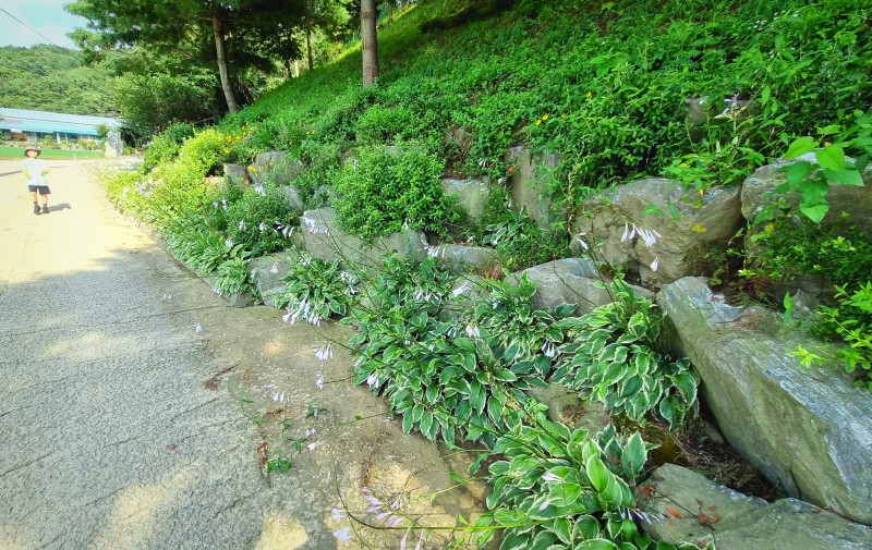 화단의 아래쪽은 이렇게 무늬비비추로 채우고,
