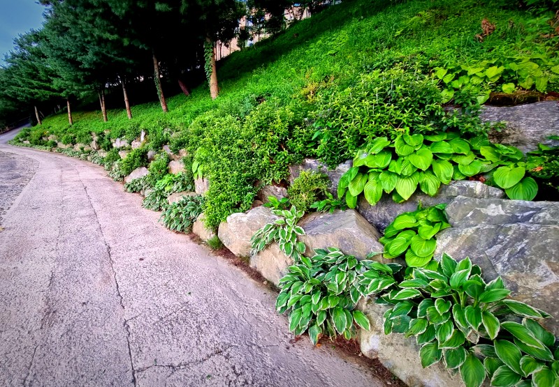 아래 호스타가 심어진 곳은 차이가 많이 납니다.
